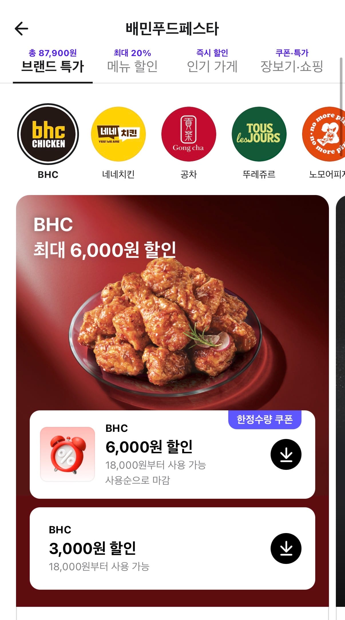 배달의민족 휴먼 고객이었던 제게, 처갓집 치킨 8,000원 할인 쿠폰 선착순 증정은 확실히 구매 트리거가 되었습니다. '선착순'을 이용한 FOMO 유발과 20,000원 이상 구매 시 사용 가능한 8천원 쿠폰은 확실히 익숙한 수법이죠.